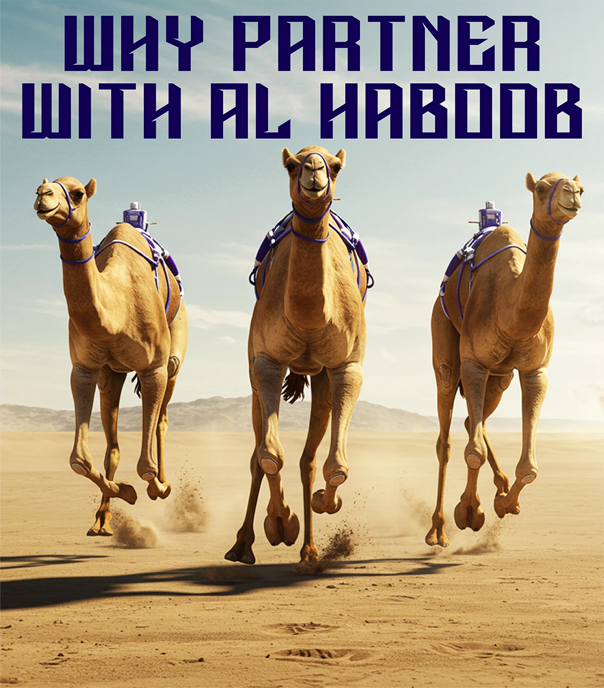 Become a Sponsor. Ride with the Storm. Not Just Sponsorship. A Strategic Alliance. Your Brand, Our Desert Storm Join an elite circle of sponsors driving camel racing into the global spotlight.Contact us to tailor a package that matches your goals. info@alhaboobracing.com Follow al haboob © 2025 Al Haboob. All Rights Reserved.Powered by SAFFwOMZZ. Engineered by Venture Insights.